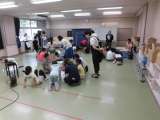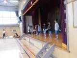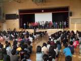 朝の時間、1年生以外の学年が体育館に集まり運動委員会の仕事についての発表を聞きま...
