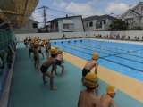 1年生が初めて武蔵丘小学校のプールに入りました。プール開きでは、校長先生の話をし...
