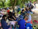 引き続き、大快晴です。山頂でグループごとにお昼とおやつを食べました。山頂での食...