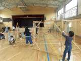 180cmと90cmの2種類の杉の角材をゴムでつなぎ合わせながら家を作っていきま...