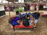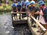 鯉にエサをあげたり、手にシールを貼ってもらったり、色々楽しんでいます。