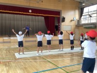 7月16日に体操教室を行いました。体操教室の先生に来ていただきました。前転・後転...