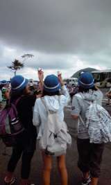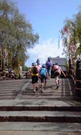 広かった青空の下、江戸村での見学が始まりました。 みんな楽しそうに、グループで園...