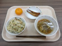 菜飯 小魚の米粉揚げ スキー汁 くだもの 牛乳