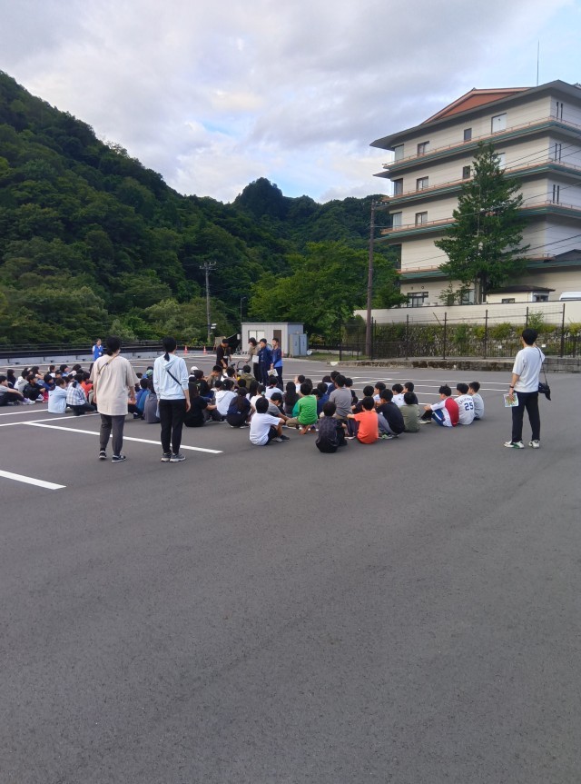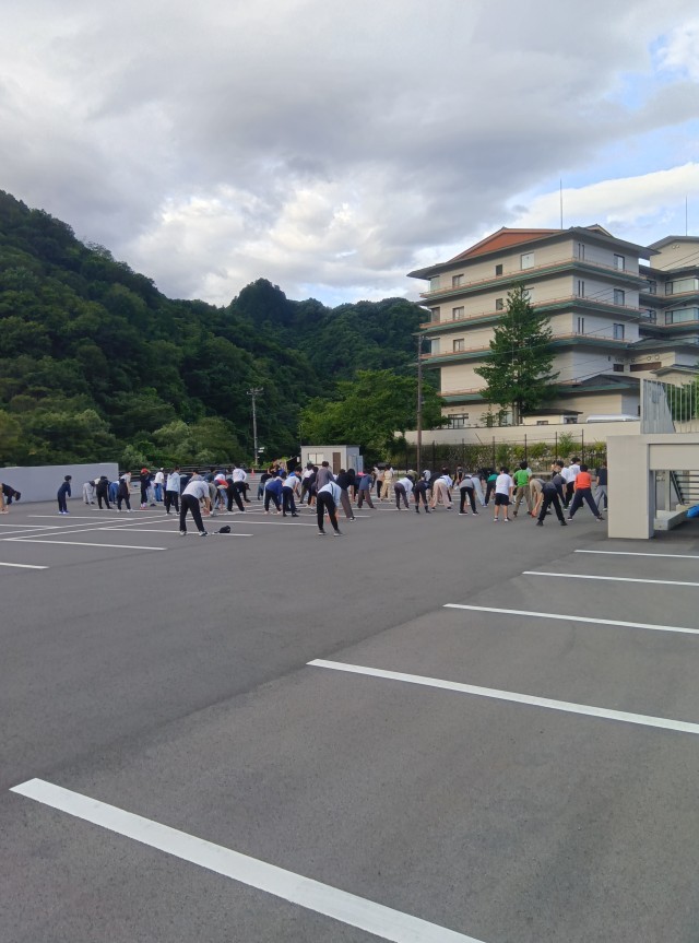 2日目の朝 宿舎の近くで朝会を行いました。この後朝食になります。