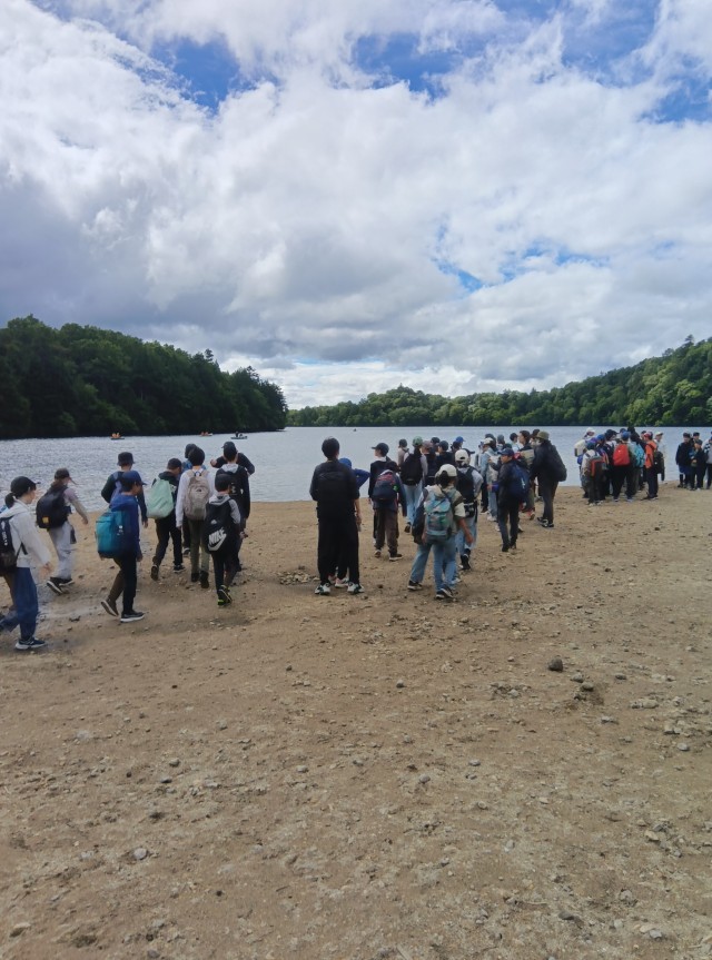 最初の見学地、湯の湖到着しました。これからハイキングにに出発します。