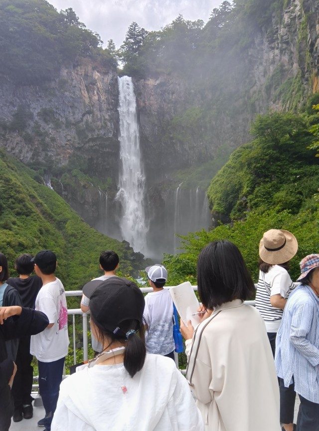 華厳の滝の壮大さに驚いていました。滝に向かう通路は冷房がかかっていると勘違いをするほど涼しかったです。