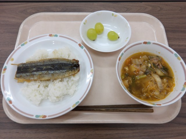 魚のかば焼き丼 ごまキムチ汁 くだもの 牛乳