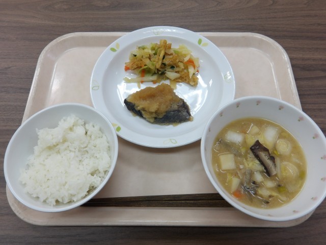 ごはん 魚のみぞれあんかけ おひたし 粕汁 牛乳