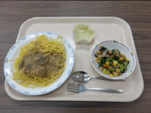 練馬スパゲッティ バランスサラダ 明日葉チーズケーキ 牛乳