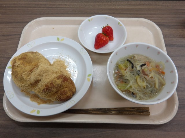 あげパン 白菜と春雨のスープ くだもの 牛乳