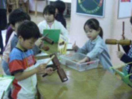 1年生の音楽の研究授業がありました。指導者は新国先生です。「星と動物の物語」というお話を聞いて、知っている楽器を使い、こがらし、星、ふくろう、うま、などを表現しました。トライアングルは星になりました。ウッドブロックは馬になりました。お話の音読に合わせて、楽器の音がみごとな効果音となりました。とても楽しそうでした。