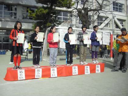 1月13日 玉川小学校のまわりを回る、マラソン大会が行われました。上野毛地区の青少年委員会の主催で、今年が40回目となります。近所の学校が10校近く参加します。大人の部もあります。中町小からも30名程の児童が参加しました。学年別・男女別で走り、中町小は優勝2名をはじめ上位でゴールする児童もいました。みんなたいへんよくがんばりました。