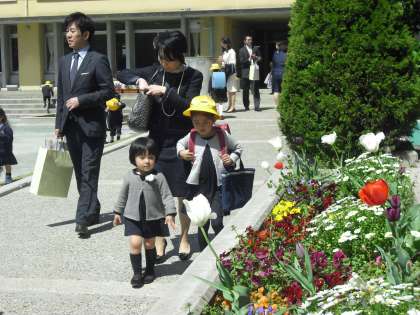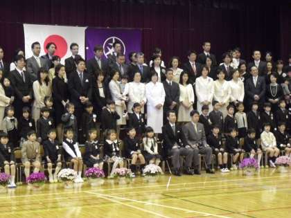 家族と一緒に記念撮影。思い出の写真となりました。教室では新しい担任の先生と初めての小学校での授業。お話はしっかりと聞けていました。帰りには家族だけの記念撮影。明日からの学校楽しみですね。元気に登校してね。待っていますよ。