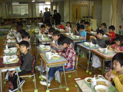 4月13日土曜日は「一年生を迎える会」がありました。1年生も中町小の仲間入りです。みんなでゲームをして遊びました。15日からは給食が始まりました。はじめての給食はおいしかったかな?保健室の前の廊下に五月の節句のかぶとが飾られています。さっそく1年生が見に来ました。