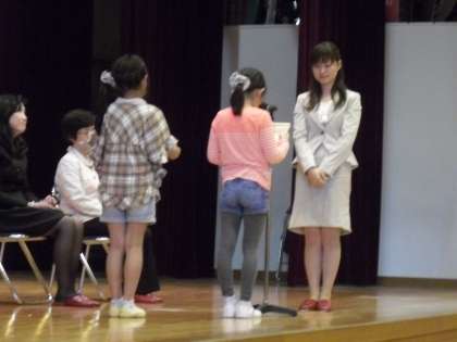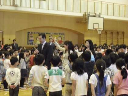この春退職・異動された教職員の方々の離任の式を、本日行いました。都合のついた佐宗英美先生、秋山鶏子先生、岩瀬たつ子事務主事の三名をお迎えして、お別れの時を過ごしました。稲葉実校長先生は5月13日の朝会に来られます。お楽しみに。