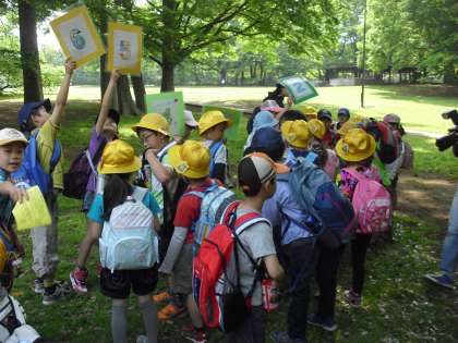 5月10日(金)、待ちに待った1.2年生の遠足です。よいお天気の中、バスで砧公園に向かいました。公園では7つのポイントを巡るオリエンテーリングを行いました。たてわり班で歩く子どもたち。色々な場面で、1年生をサポートしている2年生の姿が、とても頼もしく感じられました。ポイントを全部回ったら、校長先生の待っているゴールを目指します。みんなで遊んだ後は、美味しいお弁当の時間です。お菓子を交換して楽しそうでした。