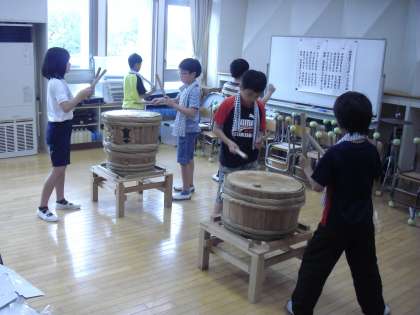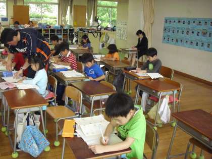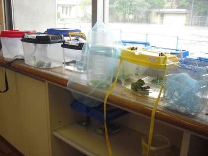 今、2年生の教室にはたくさんの虫かごが並んでいます。生活科の学習でアゲハを育てているのです。一人ひとりが大切にアゲハの幼虫を飼っています。アゲハ蝶まで無事に育って空高く飛べるようになってほしいですね。2年2組に教育実習生が昨日から来ました。4週間先生の勉強をします。運動会の練習が続いています。朝から中町音頭の太鼓と踊りの練習をしている人がいました。ご苦労様。