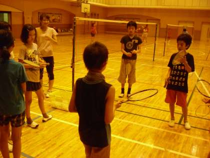 今日30日(火)のふれあい教室は「バドミントン」でした。中町小の体育館で、玉川小学校のバドミントン部とコーチの皆様に、バドミントンの指導をしていただきました。今年の夏は玉川小の体育館が工事で使えないため、中町小の体育館を使って練習をしています。その練習に入れていただきました。ありがとうございました。
