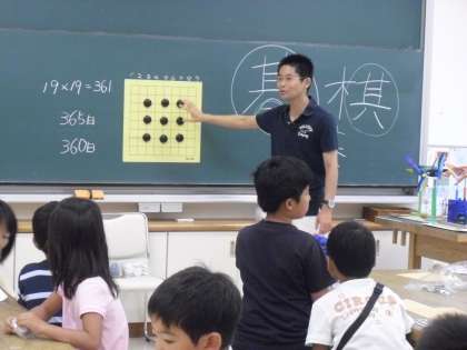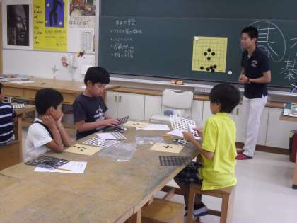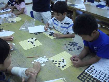 今日のふれあい教室は「はじめての囲碁教室」でした。尾山台にある囲碁教室の関先生に囲碁の入門指導をしていただきました。難しい囲碁のルールをやさしく楽しく説明され、1年生もすぐに石取りゲームができました。「囲碁って何か面白そう」興味のもてた子は、これからも続けてみてください。