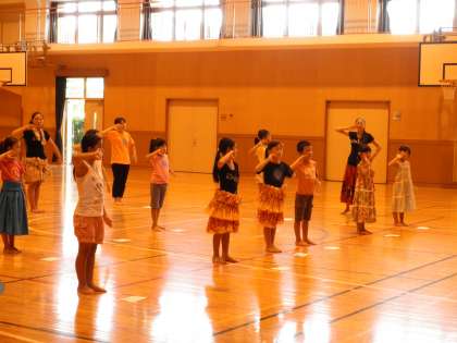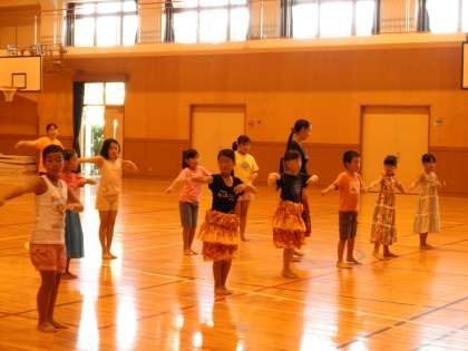 今年も、黒田さんに「フラダンス」を教えていただきました。暑い日でしたが、一生懸命におどりを練習しました。じょうずになりました。