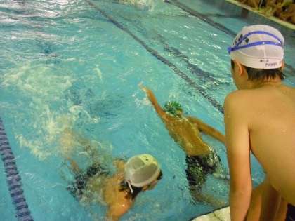 本日九月九日。五六年生による水泳記録会が、玉川中学の温水プールで行われました。今年の夏の水泳の成果を出すことができました。選んだ種目を全力で泳ぎました。六年生は小学校最後の記録会でした。卒業後も水泳に親しんでください。今年の水泳指導も明日で終了します。