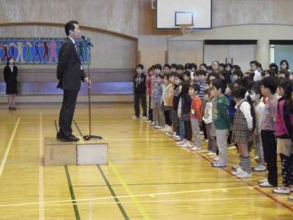 今日は12月25日。2学期終業式の日です。校長先生からお話を聞き、校歌を歌いました。子どもたちは担任の先生から通知表をいただき、たくさんの荷物を持って下校しました。13日間の冬休みが始まりました。校庭では水道工事のため、1月中は校庭が狭くなります。よろしくお願いいたします。
