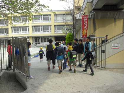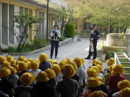 新学期が始まり、もう2週間が過ぎようとしています。あわただしい毎日ですが、どのクラスも新生活が順調に動き始めました。保護者会も終わり、今週は「あいさつ運動週間」です。元気な声が学校に響いています。1年生も給食が始まり、今日は玉川警察のおまわりさんと、交通安全の学習で学校周辺を歩きました。1年生も小学校の勉強の始まりです。