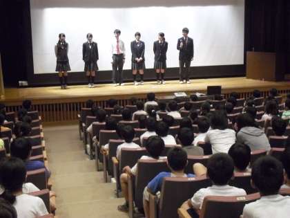 10月10日、玉川中学校の学校説明会と部活動体験が、中町小と玉川小の5年生を集めて行われました。生徒会の代表から学校生活の説明もありました。部活動は希望のところに1日入部して体験しました。中学校のイメージはつかんでくれたかな。