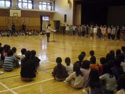 今日は、とても寒く雨も降り続く1日でした。6年生も連合運動会が28日に延期となりがっかり。そんなゆううつな気持ちを晴らすかのように、朝の音楽朝会で全校児童が元気な美しい歌声を聞かせてくれました。学習発表会に歌う「まくをあけるうた」も練習しました。