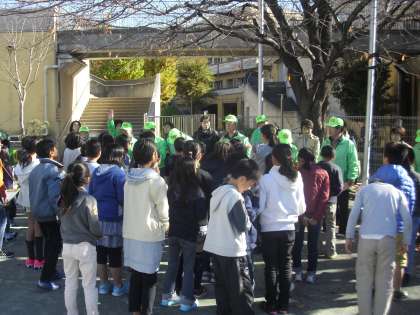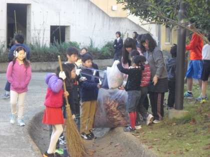 冬らしい寒さが続くようにになりました。先週から子どもたちは、朝「落ち葉掃き」を自主的にしています。玉中の生徒と一緒です。紅葉した葉をはき集めると、クッションのようにフワフワして気持ちが良さそうです。4年生は「安全マップ作り」を、緑のレンジャーさんたちと町を歩きながら調べました。毎日お世話になり、ありがとうございました。