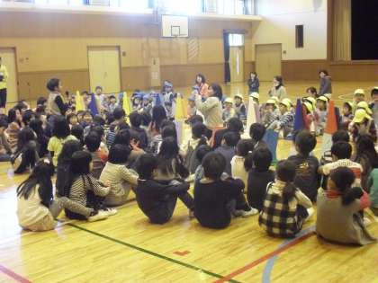 本日、中町幼稚園年長さんが小学校に来ました。1年生が一緒に遊ぶために呼びました。1年生はいろいろな楽しいお店を準備し、案内をしながら一緒に楽しむことができました。また、2年生ははんたいに幼稚園に遊びに行きました。