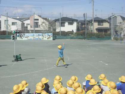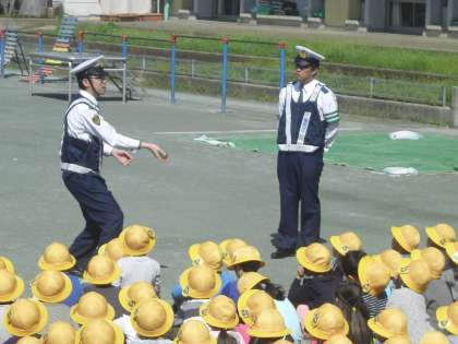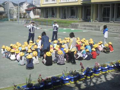 警察の方に来ていただいて、1年生が歩行訓練の学習をしました。