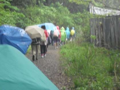 アスレチックや花の広場で遊んでいたら、冷たい雨が降ってきました。