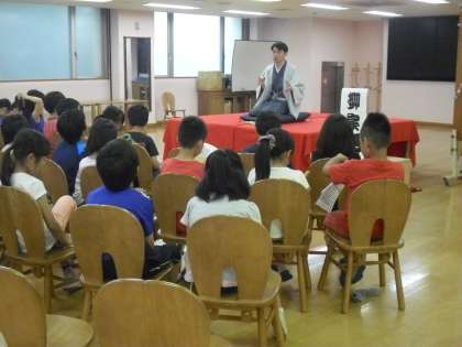 上級生に協力してもらった1年生のシャトルランと、たてわりでなかよく遊ぶ子どもたちのワンシーンです。また、金曜日は、落語家の柳家花禄さんが4年生の子どもたちに落語教室を開いてくれました。大爆笑に包まれたランチルームでした。