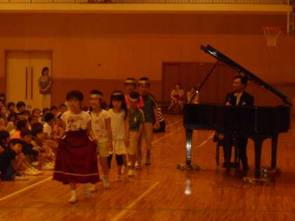 ポプラ祭りでは、代表委員の子どもたちが準備した楽しい中町小学校クイズ、卒業生の粕谷さんのお話、校長先生のお話を聞き、楽しみながら中町小学校が誕生した当時の様子を知りました。たてわり遊びは、いつもより長い時間、楽しみました。3校時のピアノレクチャーコンサートでは、ピアニストの竹内英仁氏の素晴らしい演奏を堪能しました。すてきな時間はあっという間に過ぎ、名残りを惜しみながら子どもたち一人ひとりと握手をしました。給食も開校をお祝いするメニューで、とてもおいしかったです。