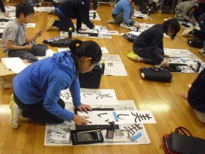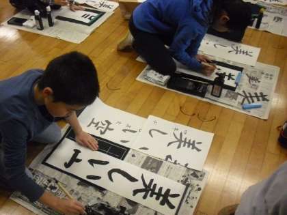 元旦に今年一年への思いを書くのが、書初めの習わしですが、どの子どもも一画一画に気持ちをこめて、ていねいに取り組んでいました。低学年は、硬筆、中学年以上は毛筆による作品が展示されます。どうぞ来週の書初め展にお越しください。