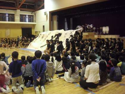 先週の土曜日は朝から学校中が興奮ぎみでした。卒業をひかえた6年生と在校生との最後の学校行事、6年生を送る会があるからです。どの学年も6年生に向けて、心を込めて出し物を披露しました。圧巻はやはり6年生の演技です。6年間の思いと感謝の心をバレー、ダンス、器械体操、得意技などで披露しました。書道パフォーマンスで描いた「輝」の文字には、6年生一人ひとりの思いが込められ、本当に輝いていました。中町の子どもたちの心のあたたかさに包まれたひとときでした。