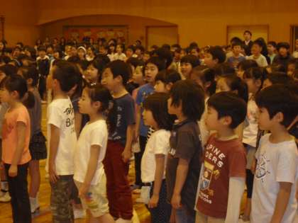 2日。離任された先生方と久しぶりに会えました。この日を心待ちにしていた子どもたち。懐かしさと嬉しさと子どもたちの歌声で体育館はあたたかい気持ちに包まれました。中町小学校から離れても中町の子どもたちの歌声と笑顔を忘れられないことでしょう。離任された先生方のご活躍を願っています。