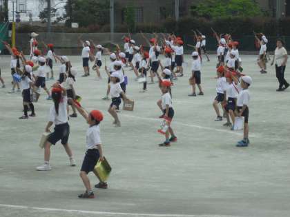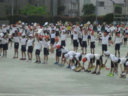 中学年の子どもたちの今年の表現運動は、エイサーをベースにした運動です。
