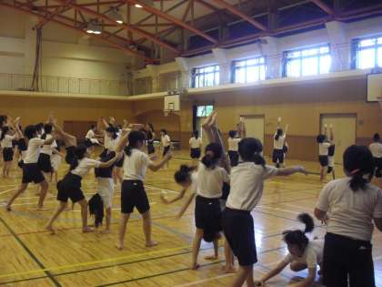 今年の高学年の表現運動のテーマは自然。自然の恵み、自然の力強さを全身で表現します。一人技、二人技、集団での技と見どころは満載です。中町の高学年として頼もしい姿を披露します。楽しみにしていてください。