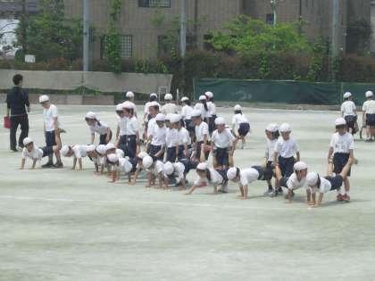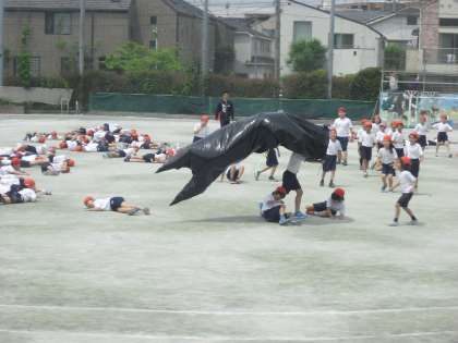 2年生の表現運動は、スイミーです。小さな魚たちが協力し合って、大きな魚に立ち向かう様子を体で表します。場面によってさまざまな海の生き物も出てきます。何種類の海の生き物が出てくるか楽しみにしていてください。