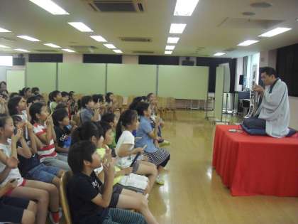14日。教科「日本語」の授業公開が各学年、クラスで行われました。4年生は、落語家の柳家 花緑(やなぎや かろく)さんをお招きし、落語の所作を教えていただいた後、落語「寿限無」「初天神」を披露していただきました。落語が上手になるコツも教えていただいて、落語の発表会が楽しみです。