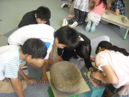 15日。世田谷区の学芸員さんをお招きし、6年生が社会科出前授業を行いました。本物の石器や土器に触れることができて、大興奮の子どもたち。弥生時代や古墳時代の、かまどで煮炊きできるような使い方をしていた土器の特徴も実際に見て理解できました。4000年もの間、埋もれていたのかと思うと感動もひとしおです。