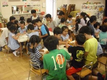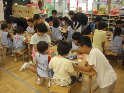 かわいい幼稚園児たちに出迎えられ、6年生もやさしいお兄さん・お姉さんの顔に変わって読み聞かせや折り紙を一緒に楽しみました。いつもはクールな6年生も、「ちょー、楽しかった!」「かわいかった!」と大満足。やさしい気持ちでいっぱいになりました。
