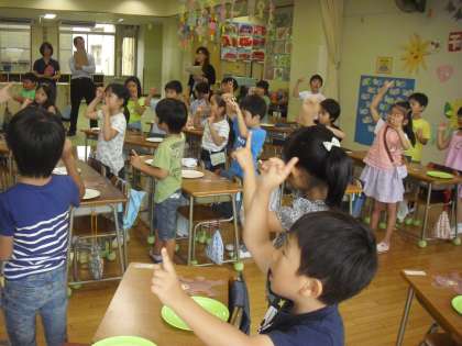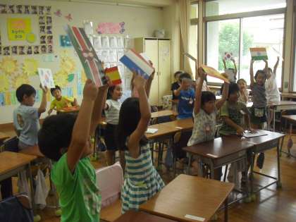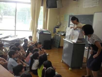 高学年の子どもたちは、週に1時間の外国語活動の時間がありますが、低・中学年の子どもたちには、年間に数回ほどALTの時間があります。平成30年度に始まる英語の教科化に向けて、中町小学校でも準備をしています。英語活動支援員さんと連携し、授業の教材作成、指導案作成を行なっています。低学年・中学年からも英語の学習が始まりますが、学級担任も子どもも楽しく取り組める英語の授業を作っていきます。今日は1年生の授業でしたが、担任も子どもも日本語を使わずに英語だけで授業を進めました。