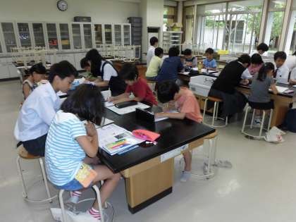 「中学生と勉強しよう」教室は、昨日に引き続き、高校生、中学生のお兄さん・お姉さんが勉強のお手伝いをしてくれました。いいところを見せようとはりきってがんばるかわいい小学生の姿にやさしい笑顔がこぼれるお兄さん・お姉さんたちでした。自分の勉強も忙しい中、後輩を支えてくれる頼もしい先輩たちに大感謝です。