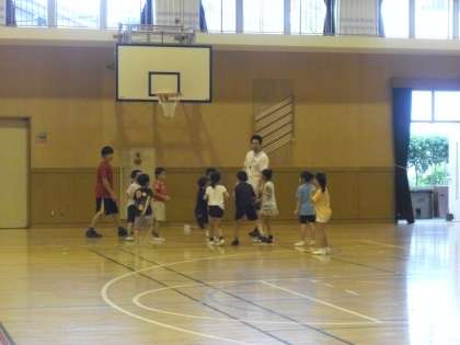 体育館では、バスケットボール教室が行われ子どもたちが元気に取り組みました。ボールを一心に追う姿がほほえましかったです。夏休み、今までやったことのないスポーツに取り組むのにいい機会です。