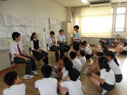 7日。玉川中学校の12名の先輩たちが、中町小学校の6年生を訪れてくれました。