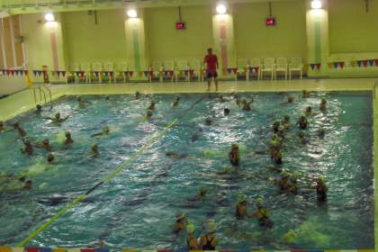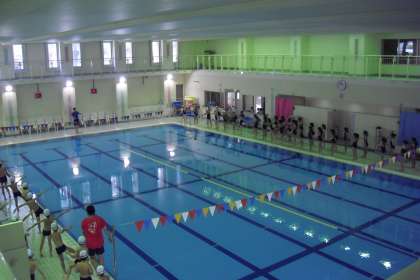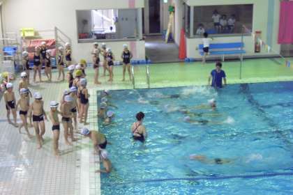 3・4年合同の水泳指導が、玉川中学校のプールで行われました。着替えるのにわずか5分!!準備運動後、一斉指導を行い、最後は4つのグループに分かれて練習をしました。